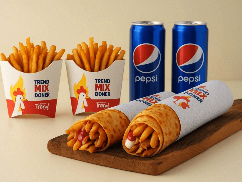 2 Adet Dürüm + 2 Adet Patates kızartması +2 Adet Kutu İçeçek